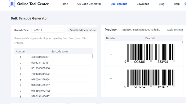 인간이 읽을 수 있는 텍스트로 대량 바코드를 생성합니다.중소기업을 위한 무료 온라인 바코드 제작기.Excel 데이터를 복사하고 복복사하고 Excel 데이복복사하십시오. 즉시 모든 바코드를 다운로드하십시오.